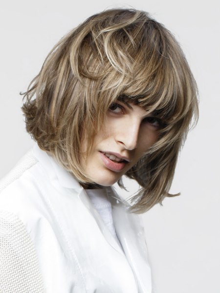 Short Layered Hairstyle Prev. Style Next Style A short layered hair style, slightly longer at the back and long bangs. Photo: Bundy Bundy More short hairstyles